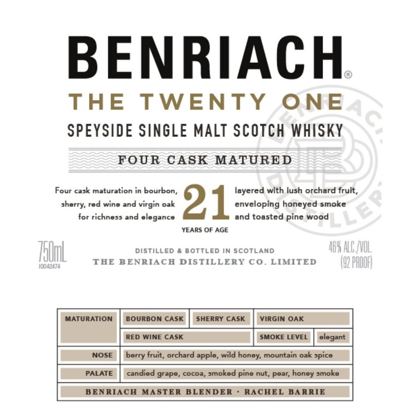 Benriach The Twenty One Speyside Single Malt Scotch Whisky Four Cask Matured 21 Year 1898 750ml