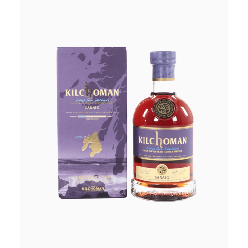 Sanaig, named after an inlet on Islays rugged Atlantic cost, is a vatting of Kilchoman matured in both sherry and bourbon barrels. This sherry cask scotch whisky is matured in a high proportion of oloroso barrels, imparting a balance of dried fruits, dark