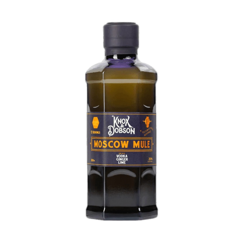 Knox & Dobsons Moscow Mule brings the timeless cocktail to life with a perfect balance of bold spice and citrus. Made with premium vodka, fresh ginger, and zesty lime, it delivers a crisp and refreshing kick with every sip. Crafted with care, it captures the essence of a well-made Moscow Mule without the need for extra ingredients or preparation.